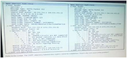 The OSPF adjacency between two routers cannot be established. What is the root cause of the problem?