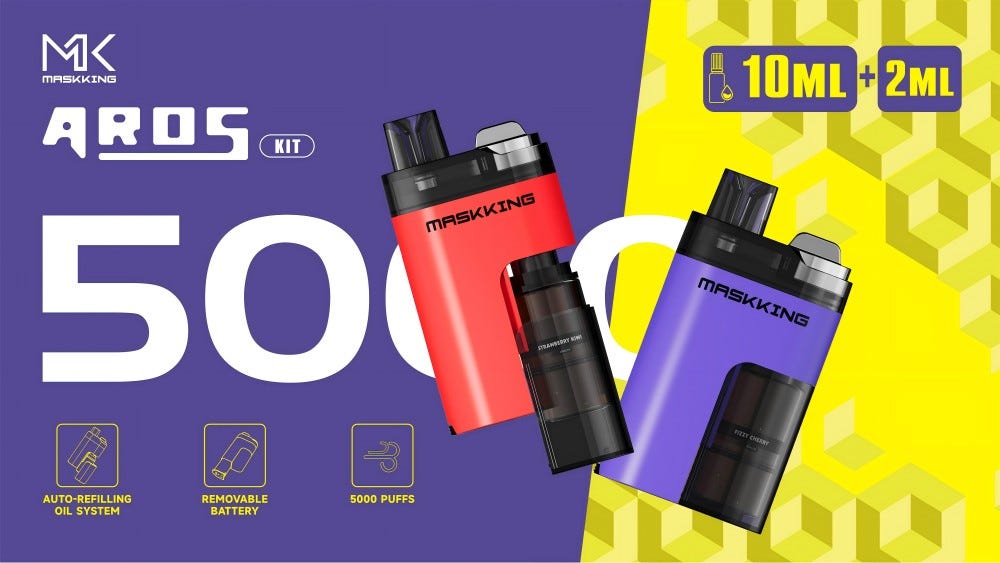 Crafted meticulously to deliver 5000 satisfying puffs, Maskking Aros Kit is designed to satisfy TPD guidelines ensuring a safer vape experience. With an impressive enjoyment of up to 5000 puffs, Aros Kit offers long-lasting satisfaction. The innovative design includes a 2ml pod and a 10ml cartridge, allowing for extended use without interruption. Indulge in the excellence of Aros Kit and let it provide you with a gratifying and flavorful vaping adventure.