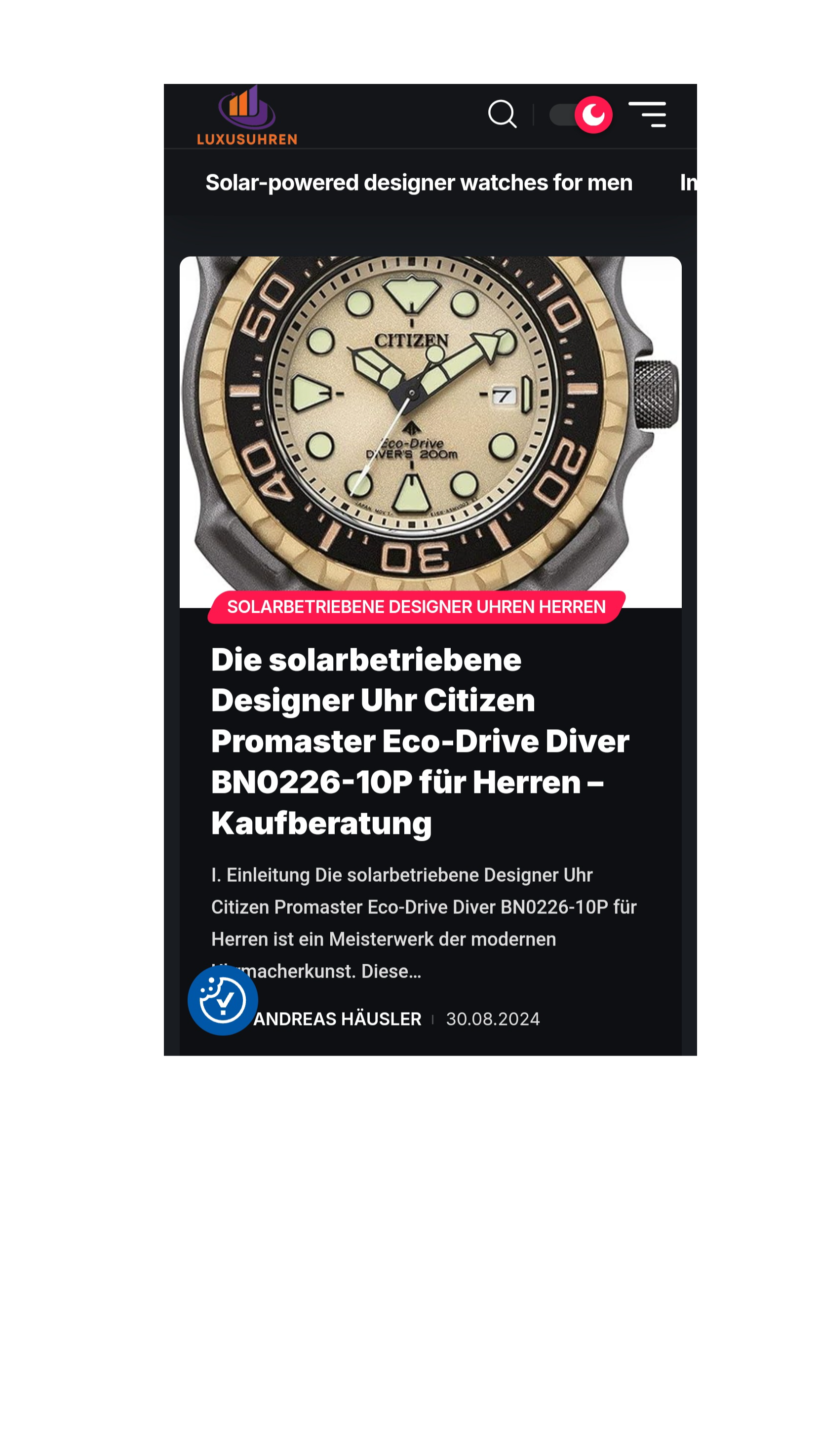 Andreas presents luxury watches from leading brands, offering you expert insights, analyses, and user guides to help you make informed purchasing decisions, with the latest entries including reviews of high-end watches by Seiko, Junghans, and Citizen. More than 450 solar-powered designer watches for men are now described on this blog, and new articles are added daily.