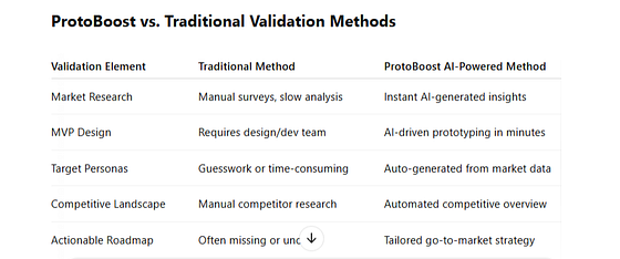 By integrating AI-driven tools into this process, ProtoBoost is changing the way startups approach early-stage product development.