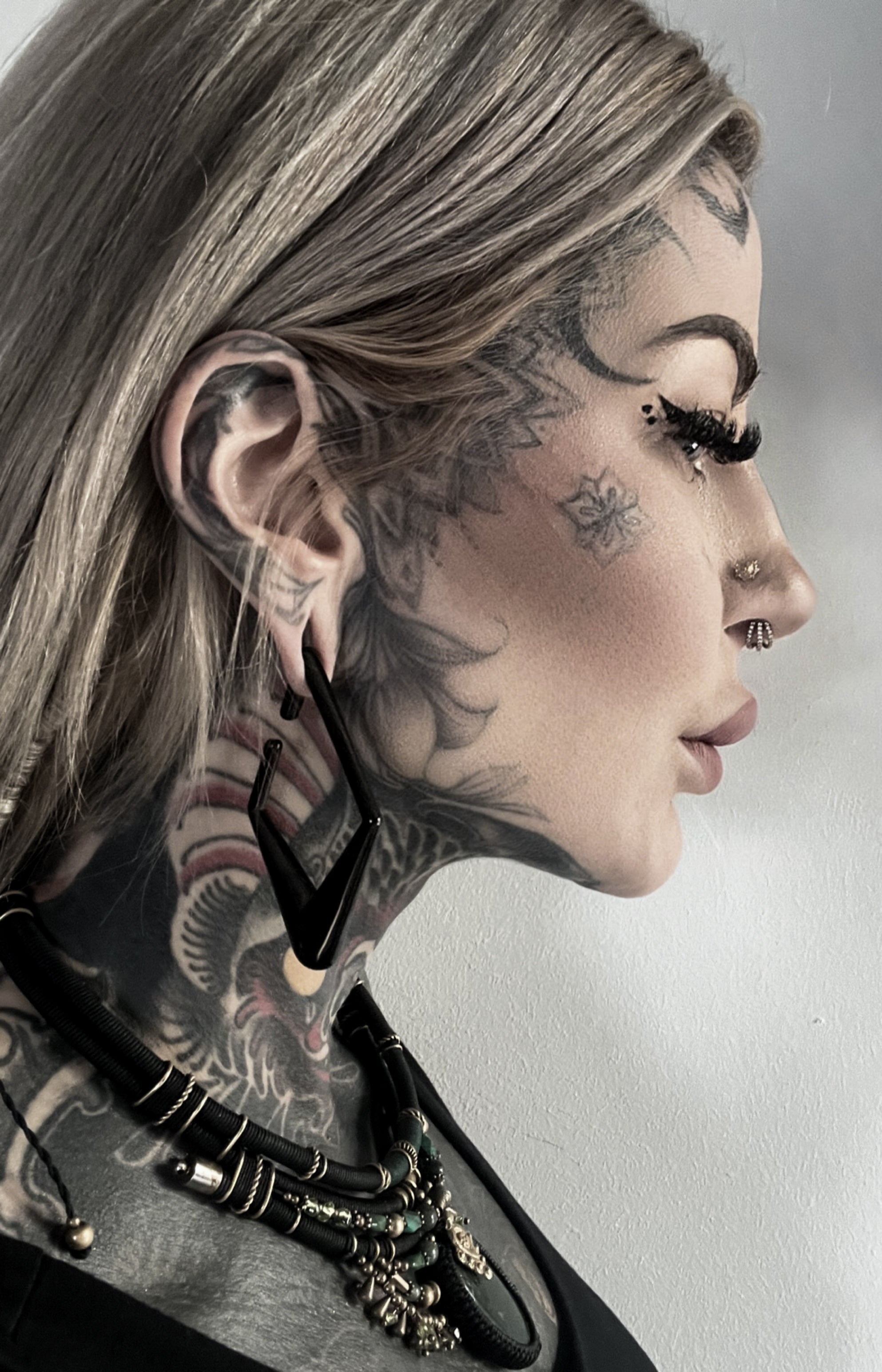 - Bold ear weights for dramatic effect