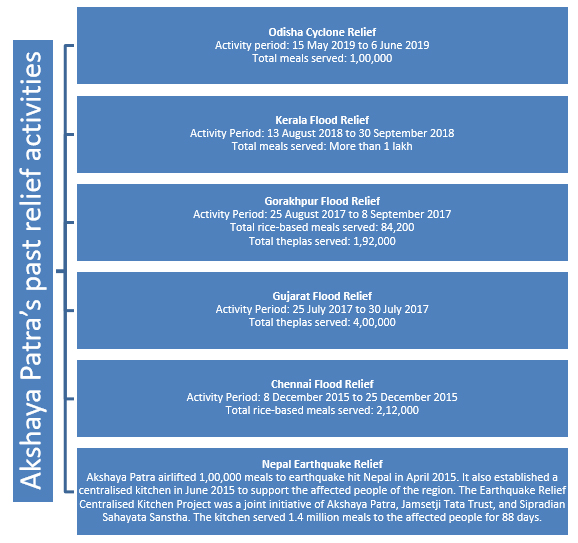 Past relief activities of Akshaya Patra