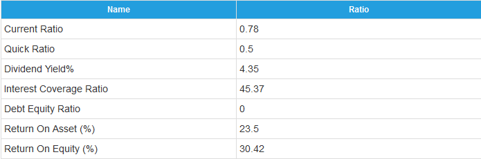 The above ratio suggests that the company is operating with zero debt.
