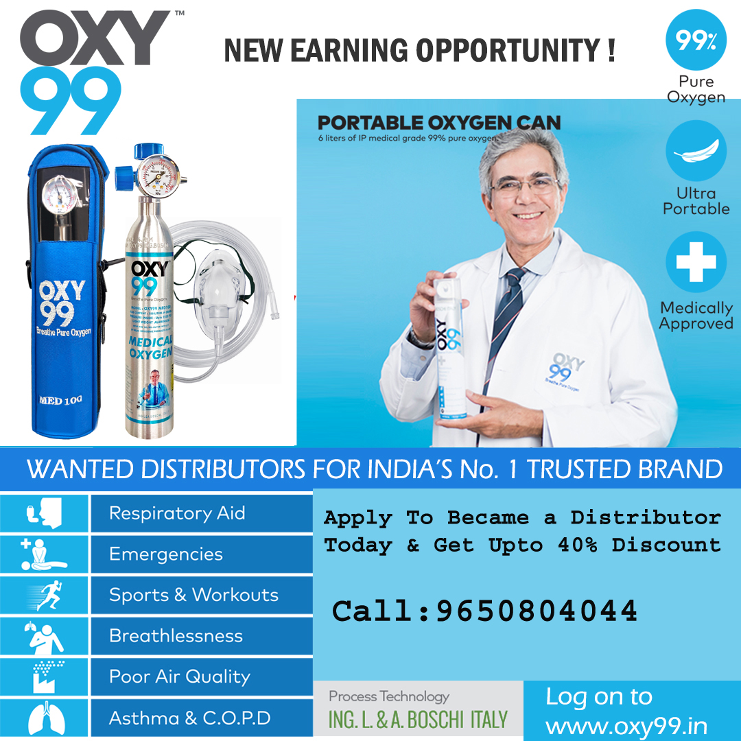 Our premium range of OXY99 products is manufactured in compliance with Indian pharmacopeia guidelines (I.P. 2014) and drug policies. We provide our distributers complete technical support, logistics and promotion. Our offer of distributorship and dealership is offered at a very competitive investment, unmatched in the oxygen industry. Apply Now!! & Get Discount.