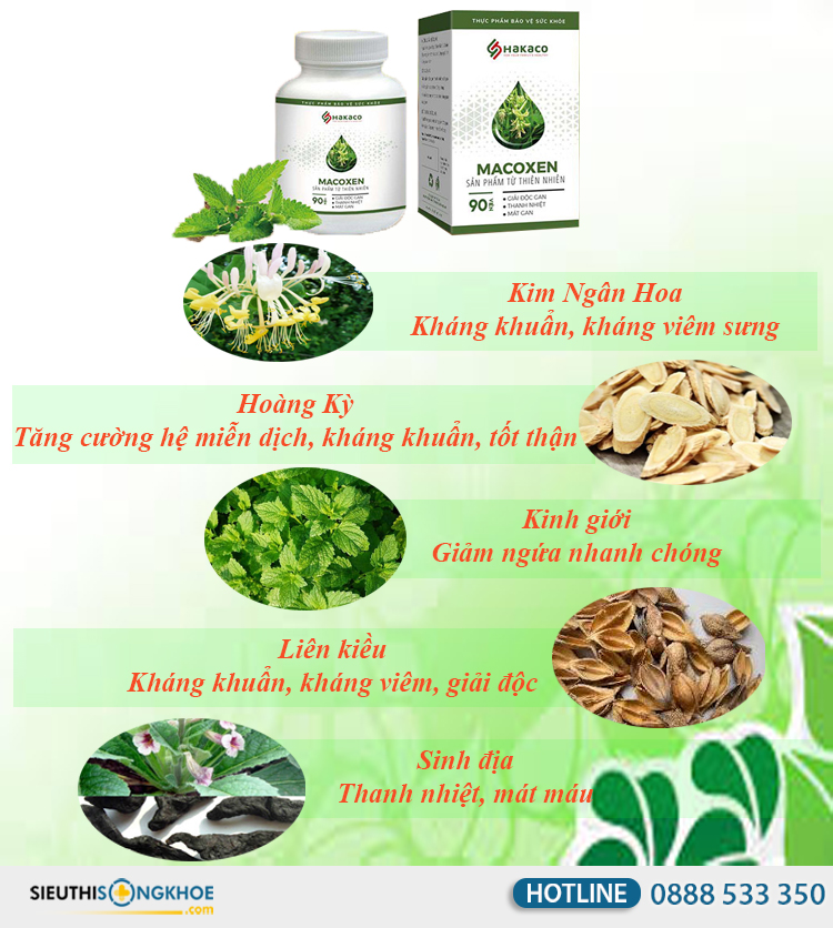 Các dược liệu được sử dụng trong viên uống hỗ trợ điều trị bệnh mề đay Macoxen vốn đã rất thân thuộc với người Việt Nam, nên khách hàng khi sử dụng sẽ cảm thấy yên tâm hơn vì biết thực sự mình đang sử dụng những gì.