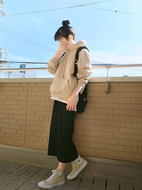 3. You can also look cool and trendy by combining your hoodie jacket with a long span skirt. This style is also suitable for you to wear when going to campus.