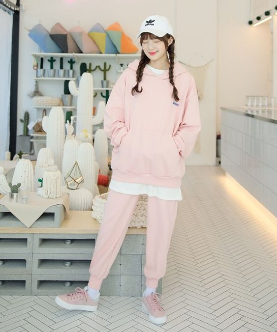 5. If you like to exercise, maybe you can use this "outfit of the day" as a reference. Choose a hoodie and training pants set with a cute matching color like pink. Don't forget to use your favorite baseball cap or trucker hat to protect your hair from sun exposure while exercising. Guaranteed your appearance will be more feminine and cute if you wear it.