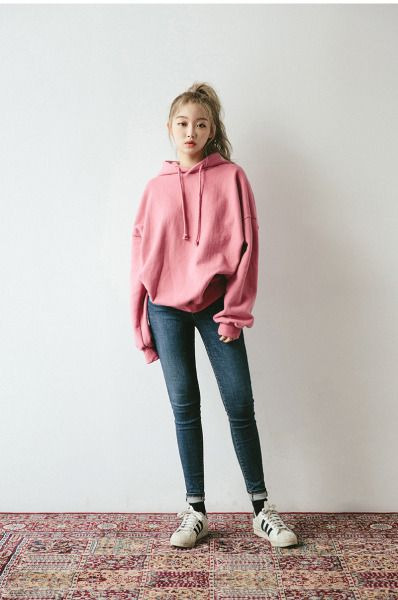 6. Want to look simple? You can combine your favorite hoodie with your favorite jeans. Remember to choose a hoodie jacket in bold and cute colors like pink, to give the impression of a Korean style.
