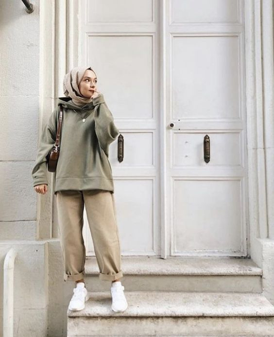 4. You can try combining a monochrome hoodie jacket and earth tone nuanced pants. The combination of a moss green hoodie and beige pants will make you look calmer and more classy.