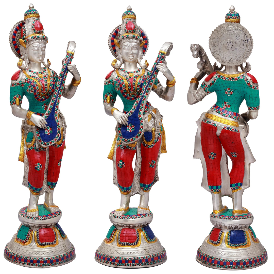 Get Brass Statue-Standing Saraswati Flowing Music From Her Veena
