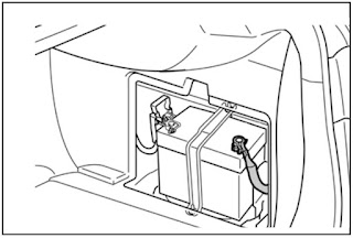 Then disconnect the cable from the auxiliary battery negative (-) terminal.
