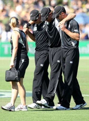 New Zealand allrounder Jacob Oram is in doubt for the remainder of the Chappell-Hadlee Trophy series after sustaining a knee injury in the first ODI. Oram sent down seven overs, taking the key wicket of Shane Watson, before he twisted his left knee in the 28th over while fielding a single off Michael Hussey. His spikes appeared to stick in the turf as he fell to the ground, writhing in pain, and he was carried off by team-mates Tim Southee and James Franklin.