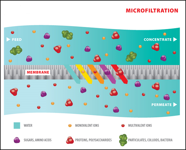 In the process of membrane microfiltration, fluid is passed through membranes with very small pores for separating bacteria, micro-organisms, and suspended particles among others. The membranes are used in the pre-treatment for desalination technologies, such as nano-filtration and reverse osmosis.