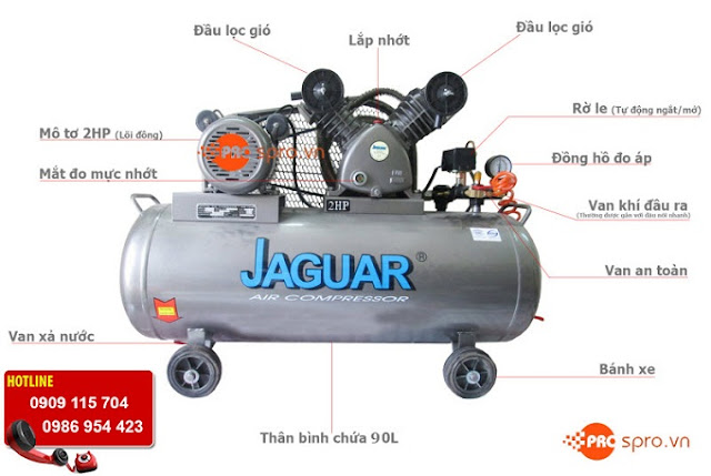Máy nén khí Jaguar EV51H100 bình chứa 100 Lít phù hợp với các tiệm rửa, sửa ô tô, xe máy vừa và nhỏ.