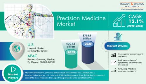 The precision medicine market will touch USD 738.8 billion, growing at a 12.1% compound annual growth rate, by 2030.