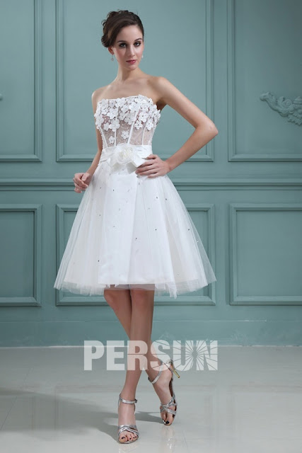 | Cheap Strapless Sheer Knee Length Wedding Dress, buy here! |