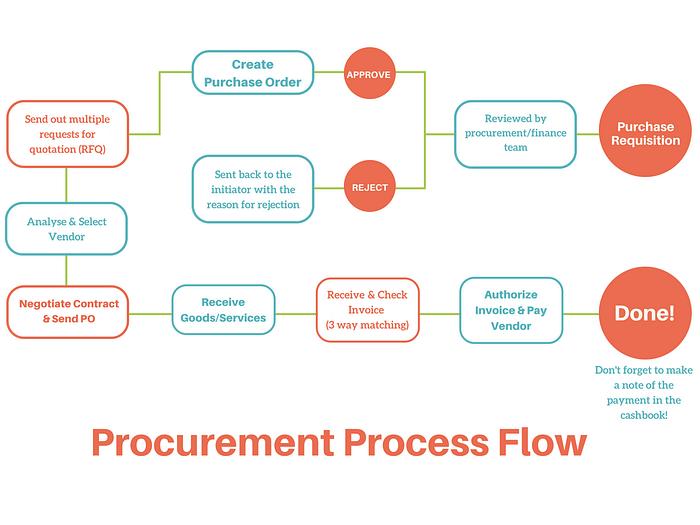To understand the procurement process, we have to look at the flow of procuring things and services step by step. The procurement process can be different depending on the size of the organization and the type of procurement.