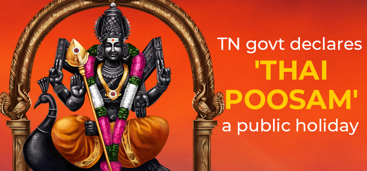 For many years, devotees had been requesting the government to declare ‘Thai Poosam’ as a public holiday. It is one of the major festivals in Tamil Nadu that celebrates the worship of the Tamil deity, Muruga. In the neighboring state of Kerala, too, Thai Poosam is celebrated. Foreign countries like Singapore, Malaysia, Srilanka, Indonesia, and Mauritius, with a sizeable population of diasporic Tamils, also celebrate this festival with great pomp. Singapore, Malaysia, and Mauritius is home to a big chunk of Tamil speaking people.