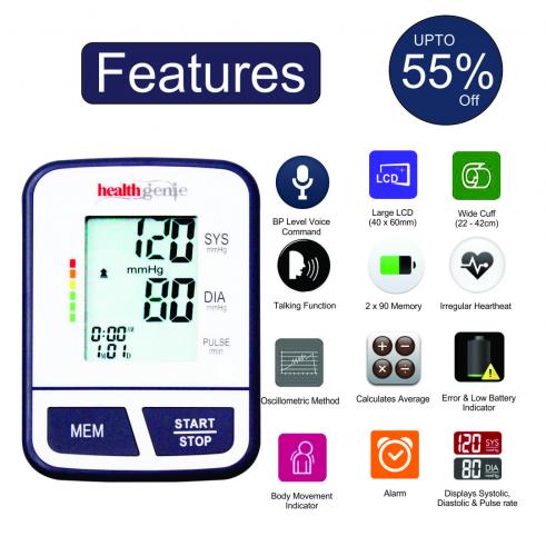 This BP monitor from Healthgenie provides you the convenience of monitoring it at home. The clear, l