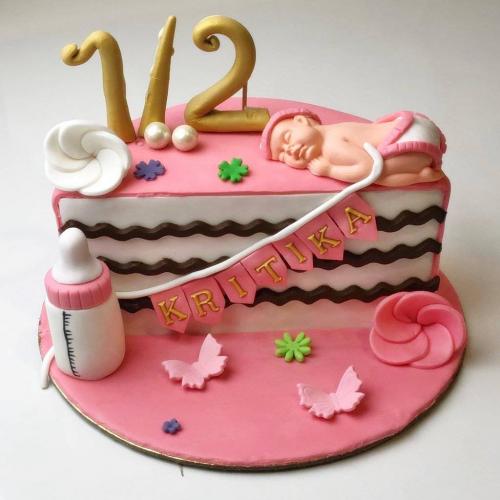 This is a 6-month birthday cake made with the finest quality fondant and ingredients. You can easily