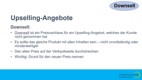 Downsell: Downsell ist ein Preisnachlass für ein Upselling-Angebot, welches der Kunde nicht genomme