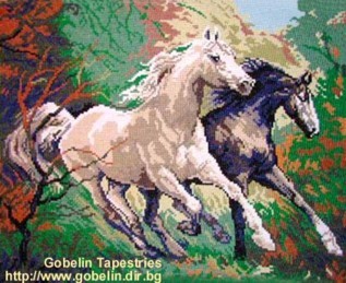 GOBELIN THE MUSTANGS 46X34CM. 17 COLOURS GOBELINS ARE MADE OF CATALOGUE OF “WIEHLER GOBELI