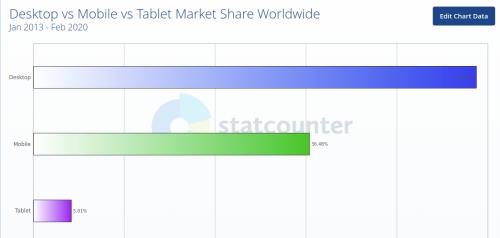 Desktop vs Mobile vs Tablet Traffic Share worldwide