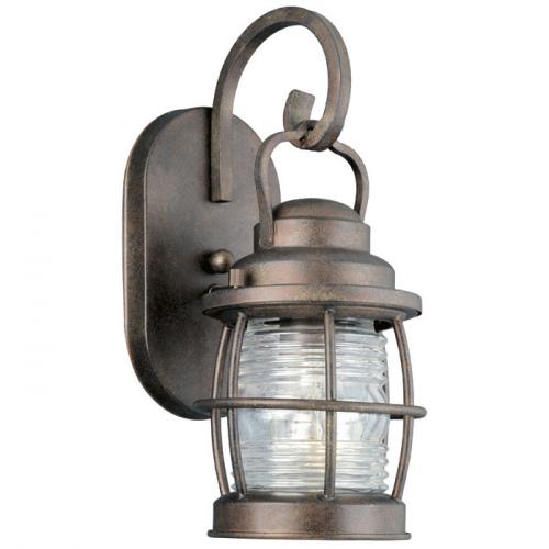 BEACON 1LT. SMALL WALL LANTERN, 4 inch Diameter Clear Ridged Glass Shade Aluminum Solid Brass