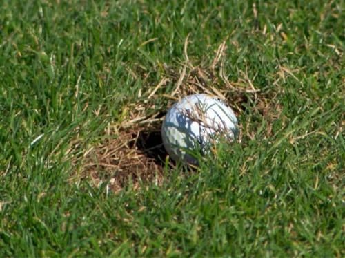 Rõ ràng là divot này là do 1 tay gôn khác đã tạo ra nhưng bóng của bạn lại đang nằm gọn trong hố. Tr