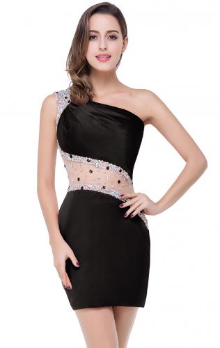 One Shoulder Satin Short Cocktail Dress Online Australia with Beads Design Formaldressau: There