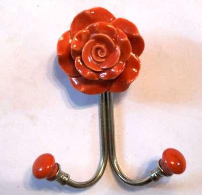This pretty Red Rose hook is made from ceramic , iron and painted antique white in a vintage style .