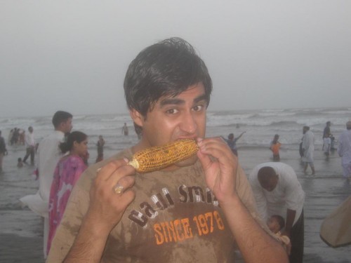 My Friend enjoying bhutta