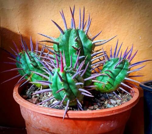 Euphorbia ferox, also known as African Milk Barrel, is a striking succulent native to South Africa.