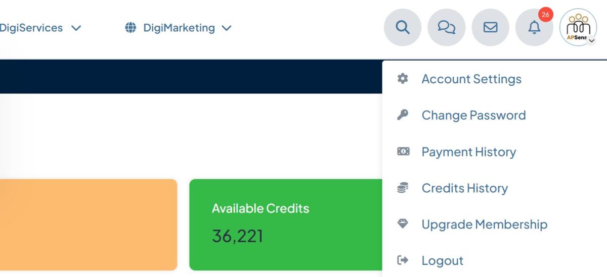 - Navigate to the top right corner of your APSense dashboard
